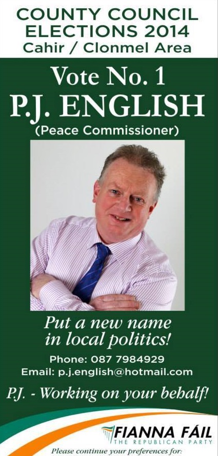 Flyer from PJ English -Fianna Fail -Clonmel -2014 Local Elections » pjenglish1