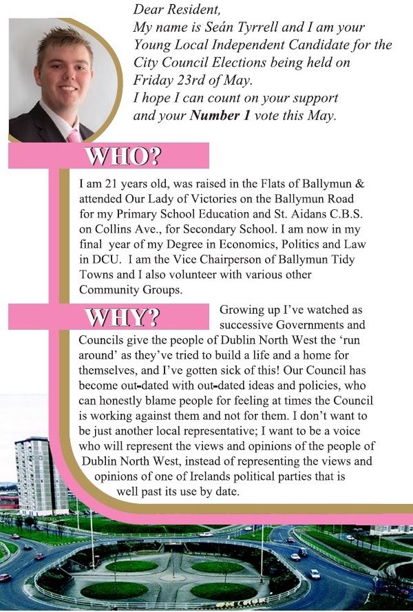 Leaflet from Sean Tyrrell -Independent -Ballymun -2014 Local Elections » seantyrrell2