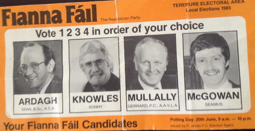 Flyer for Sean Ardagh, Sonny Knowles, Gerrard Mullally and Seamus McGowan -Fianna Fail -Terenure -1985 Local Elections » sonny2