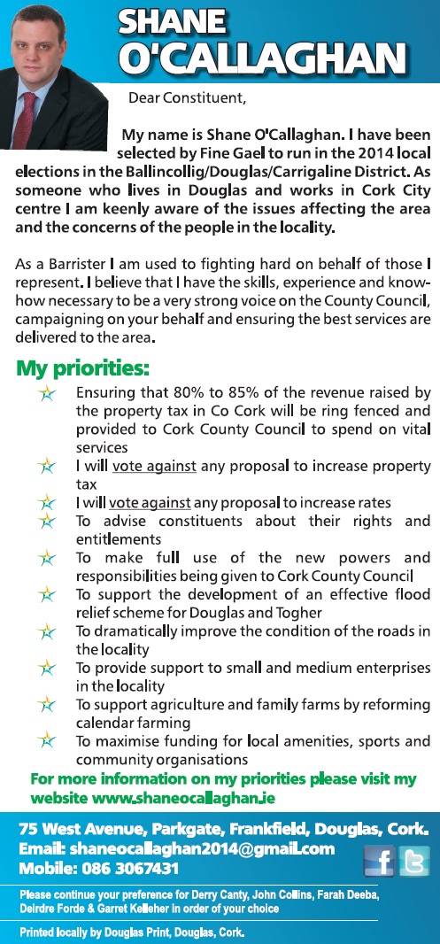 Leaflet from Shane O’Callaghan -Fine Gael – Ballincollig-Carrigaline » socallaghan2