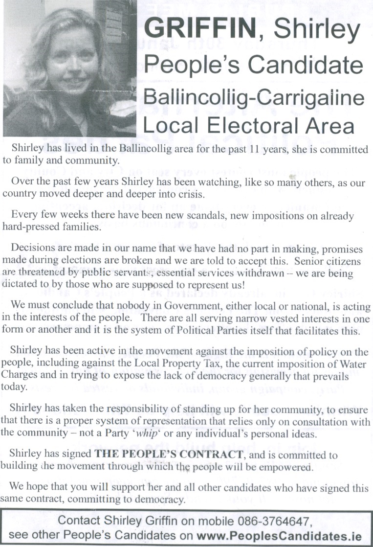 Leaflet from Shirley Griffin -People’s Candidate (CPPC) – Ballincollig-Carrigaline » ShirleyGriffinFlyer