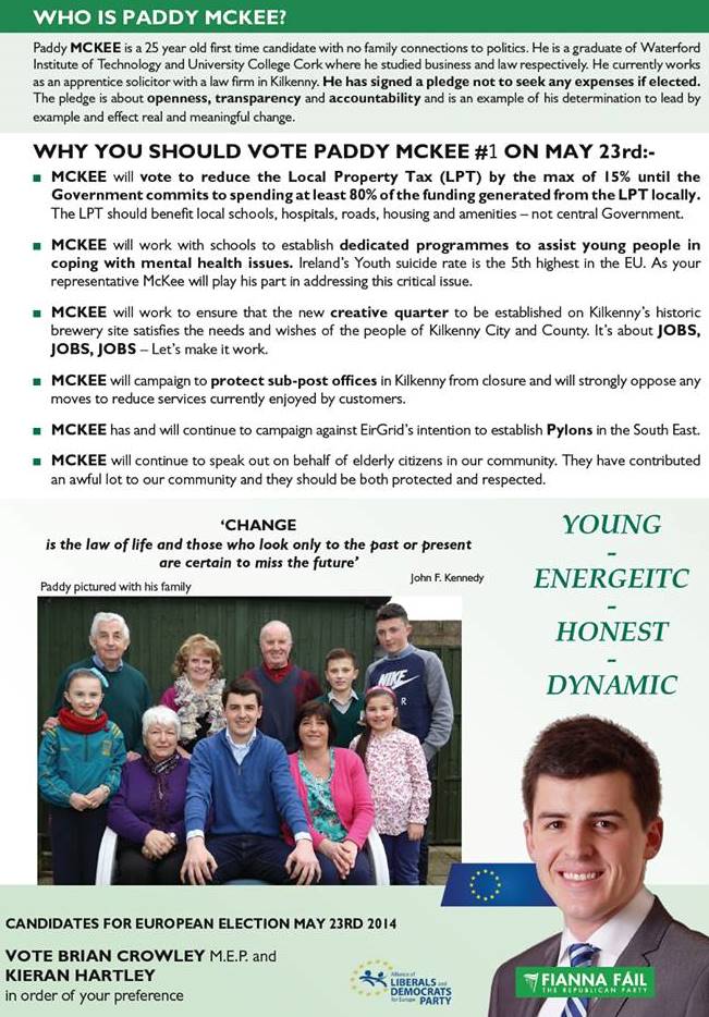 Leaflet from Paddy McKee -Fianna Fail -Kilkenny City West -2014 Local Elections » pmckee2