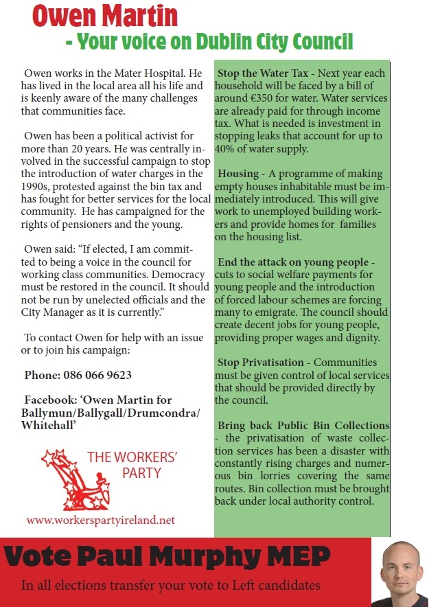 Leaflet from Owen Martin -The Workers Party -Ballymun -2014 Local Elections » omartin2