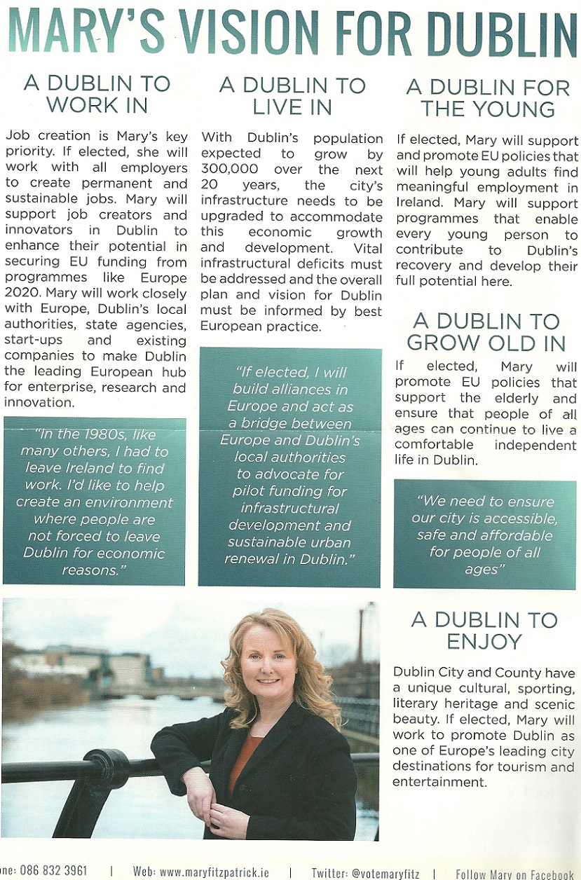 Leaflet from Mary Fitzpatrick -Fianna Fail -Dublin -2014 European Elections » maryfitzpatrickpg2
