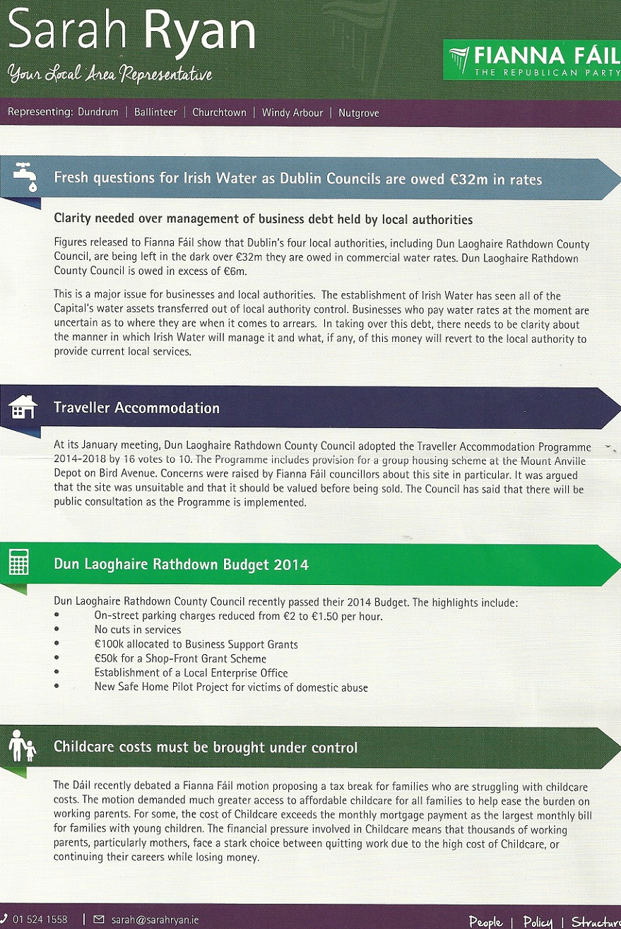 Newsletter from Sarah Ryan -Fianna Fail -Dundrum -2014 Local Elections » sryan2