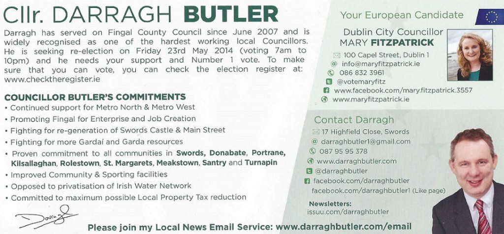 Flyer from Darragh Butler -Fianna Fail -Swords -2014 Local Elections » dbutler2