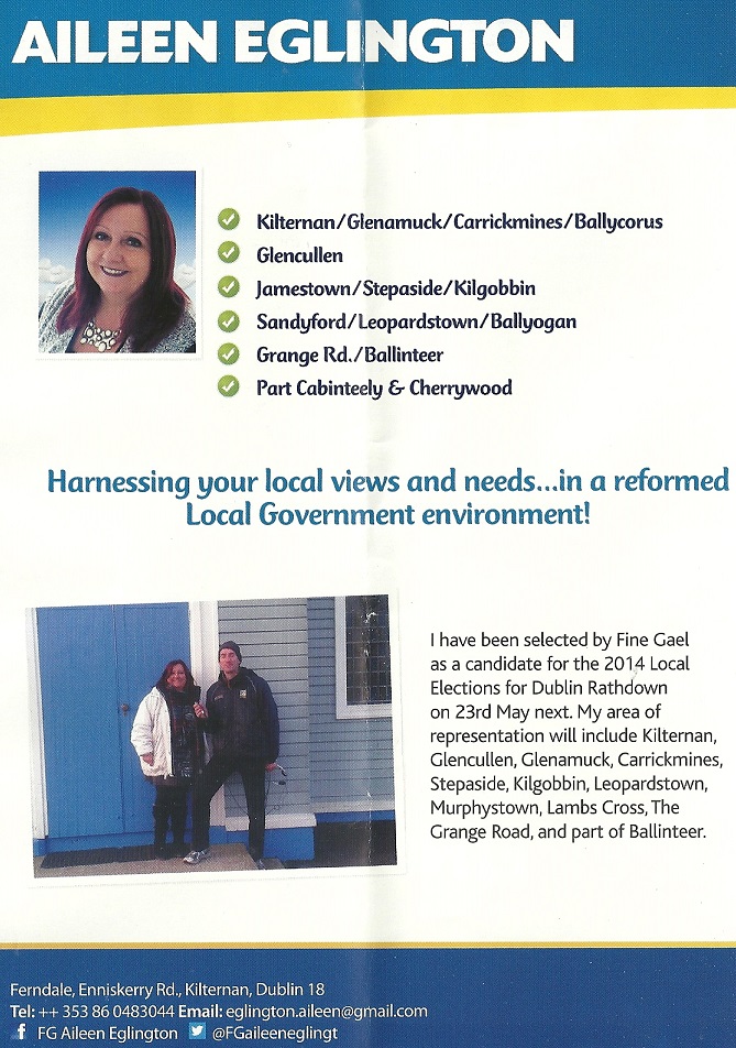 Leaflet from Aileen Eglington -Fine Gael -Glencullen Sandyford -2014 Local Elections » aeglington2