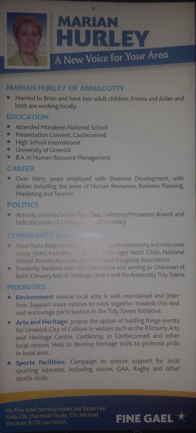 Flyer from Marian Hurley -Fine Gael -Limerick City East -2014 Local Elections » MarianHurley2