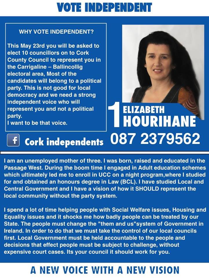 Leaflet from Elizabeth Hourihane – Independent – Ballincollig Carrigaline -2014 Local Elections » ehourihane1