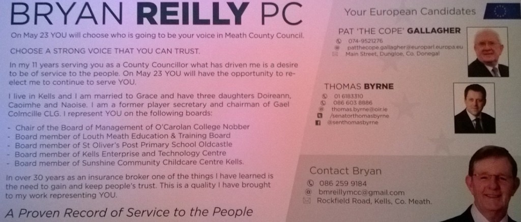 Leaflet from Bryan Reilly -Fianna Fail -Kells -2014 Local Elections » breillykells2