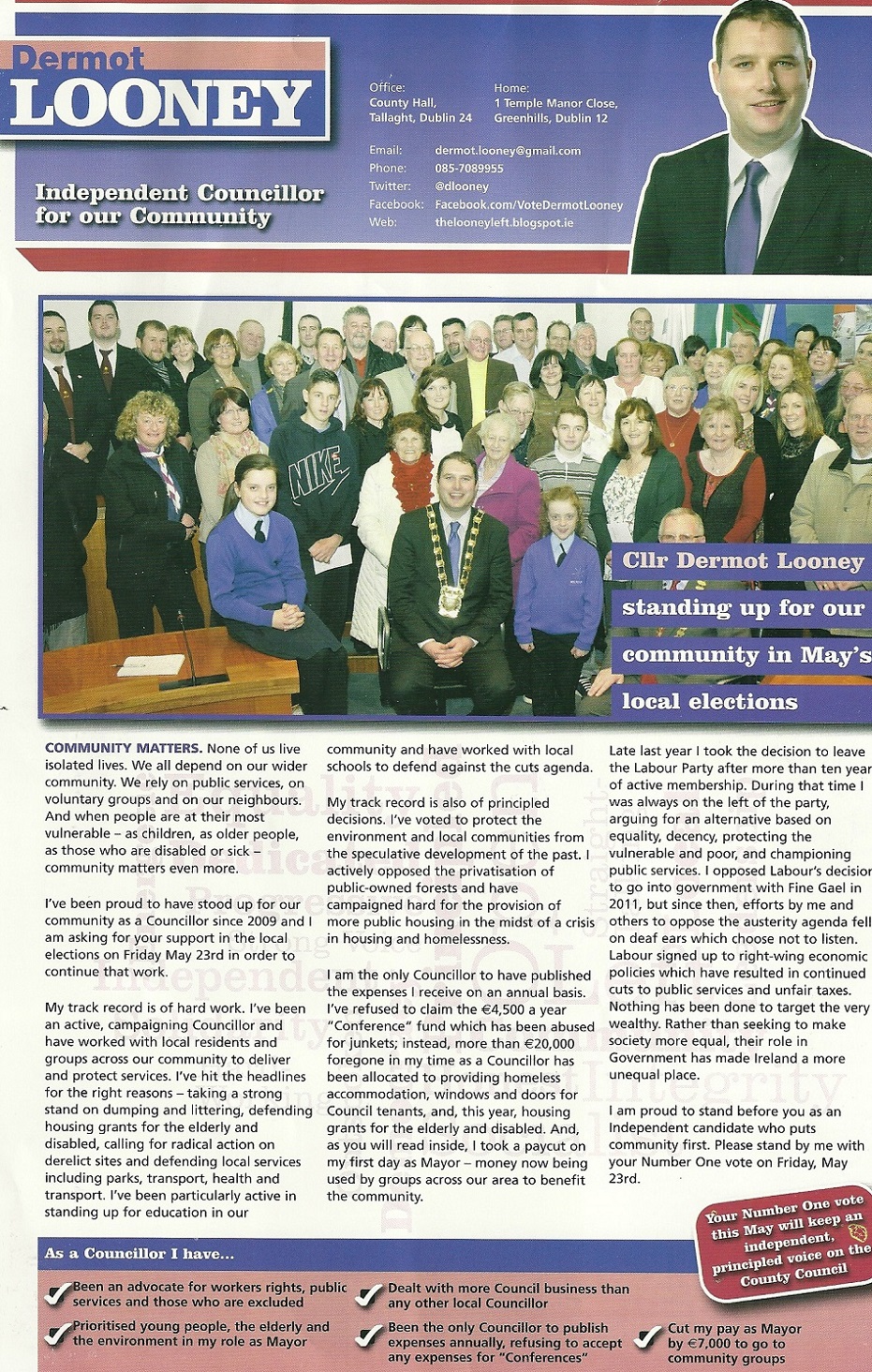 Newsletter from Dermot Looney- Independent – Terenure Templeogue -2014 Local Elections » dlooneynews1
