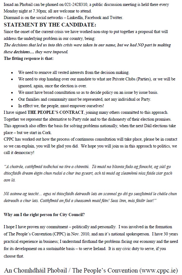 Diarmaid Ó Cadhla -People’s Candidate (CPPC) -Cork South East » Diarmaidocadhla2
