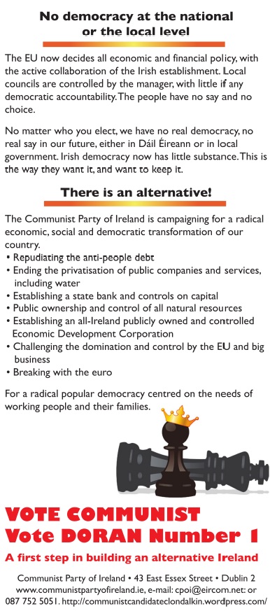 Leaflet for Paul Doran -Communist Party of Ireland – Clondalkin -2014 Local Elections » cpile14clondalkin