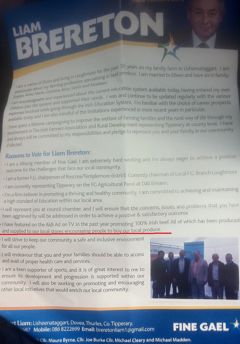 Leaflet from Liam Brereton (who was in an Aldi ad) -Fine Gael – Templemore Thurles » lbrereton2