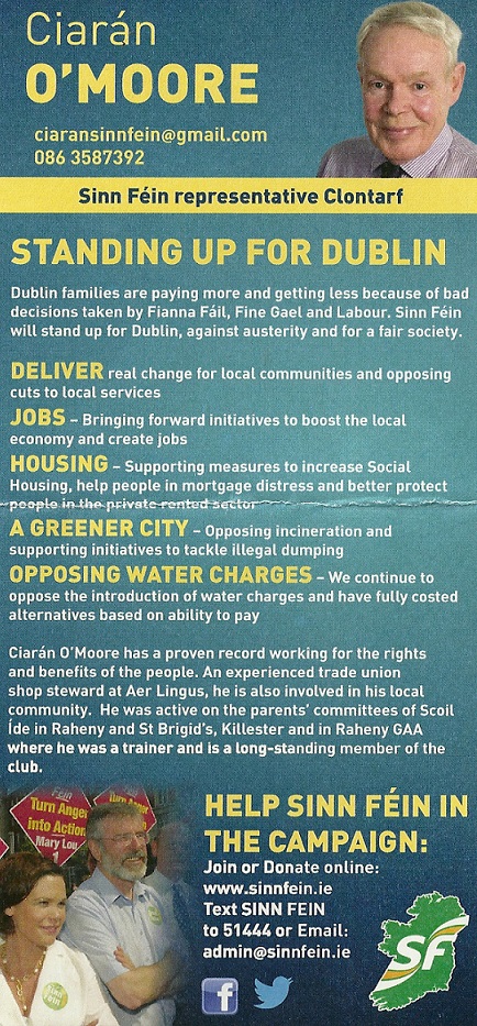 Flyer from Ciarán O’Moore -Sinn Fein -Clontarf -2014 Local Elections » comoore1