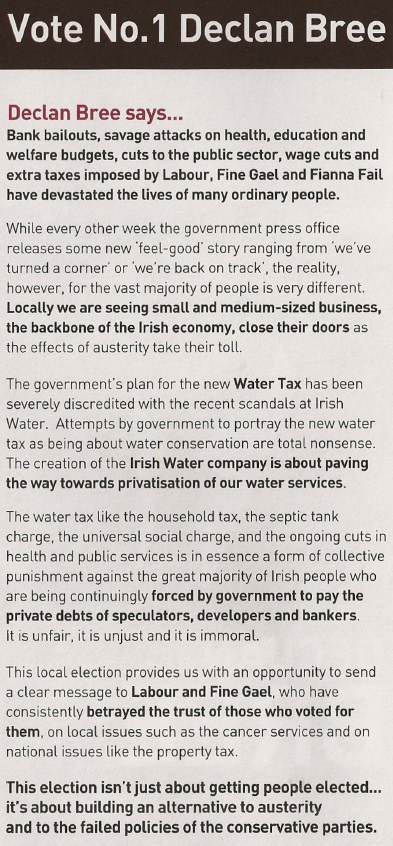 Leaflet from Declan Bree- Independent – Sligo -2014 Local Elections » dbree3