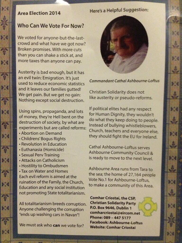 Leaflet from Commandant Cathal Ashbourne Loftus – Christian Solidarity Party -Ashbourne » cloftus1