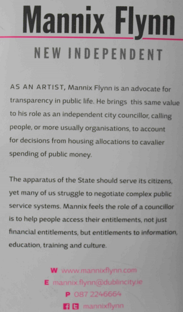 Sticker , Poster and leaflet from Mannix Flynn – Independent – Pembroke South Dock » MannixCardBackMF
