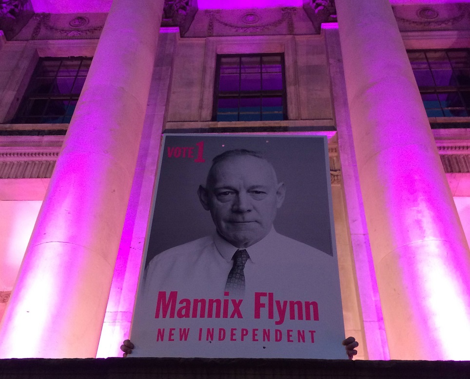 Sticker , Poster and leaflet from Mannix Flynn – Independent – Pembroke South Dock » MannixFlynnCityHall