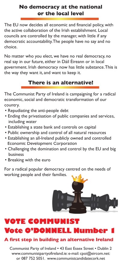 Leaflet for Michael O’Donnell -Communist Party of Ireland – Cork North East -2014 Local Elections » cpile14cork