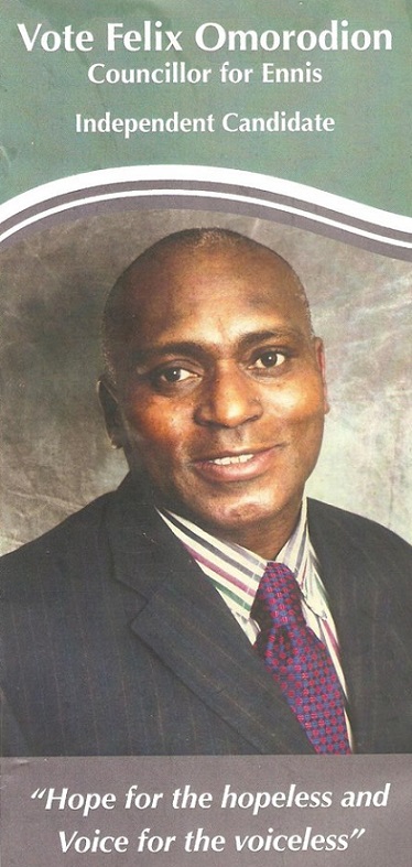 Flyer from Felix Omorodion -Independent – Ennis -2014 Local Elections » felixomorodion1