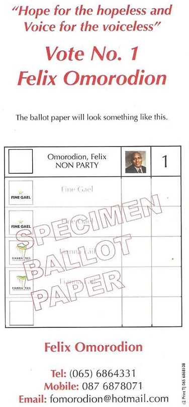 Flyer from Felix Omorodion -Independent – Ennis -2014 Local Elections » felixomorodion2