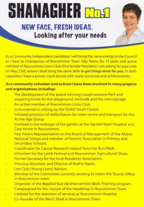 Leaflet from Kathleen Shanagher -Independent -Roscommon -2014 Local Elections » kshanagher2