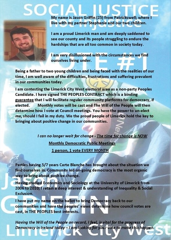 A leaflet from Jason Griffin who is running as a People’s candidate (CPPC) in Limerick City West.