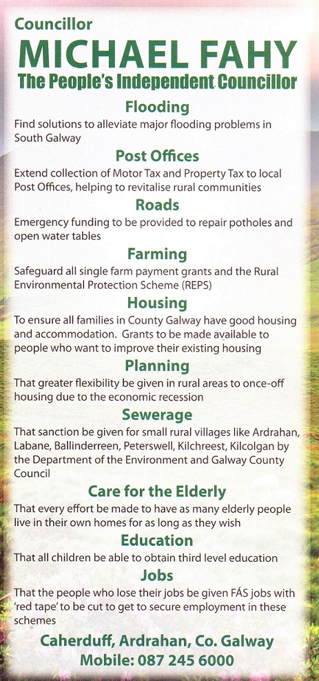 Leaflet from Michael “Stroke” Fahy – Independent – Loughrea – 2014 Local Elections » stroke2014bk
