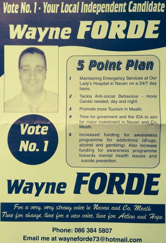 Leaflet from Wayne Forde -Independent -Navan -2014 Local Elections » wforde