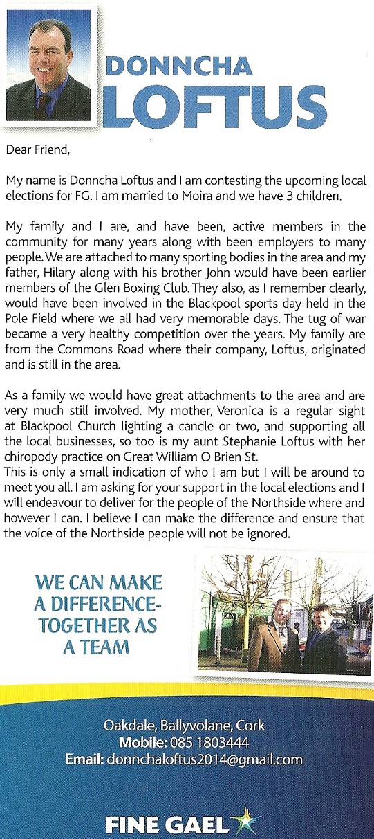 Flyer from Anthony Barry -Fine Gael – Cobh -2014 Local Elections » dloftus2