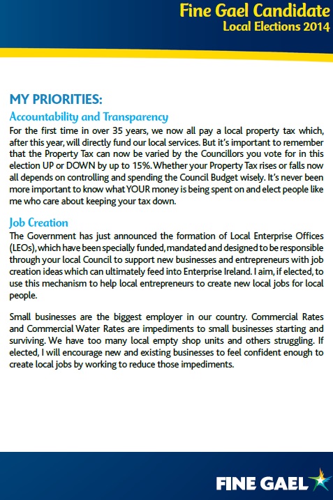 Leaflet from Keith Redmond -Fine Gael -Howth Malahide » kredmondl3