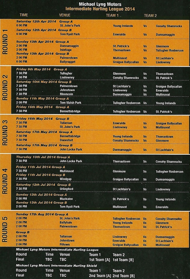 Kilkenny Senior and Intermediate Hurling Fixture list from Joe Malone -Fianna Fail -Kilkenny City West » jmalonehurl3