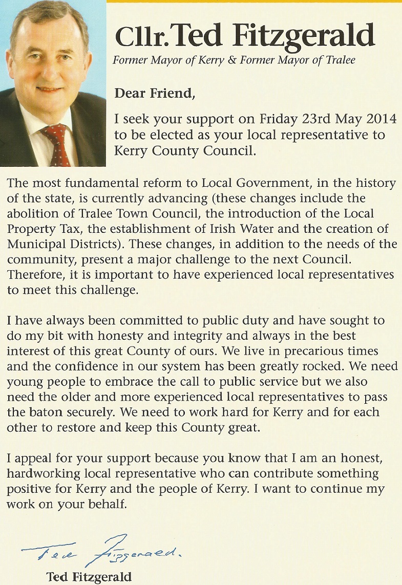 Leaflet from Ted Fitzgerald -Fianna Fail – Tralee » TedFitzgeraldFF2