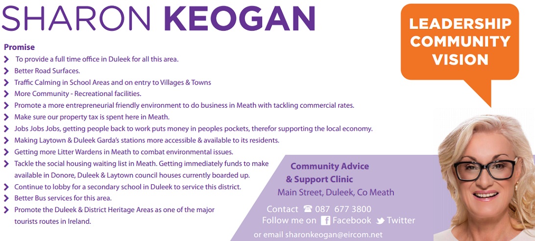 A Canvass Card from Independent candidate Sharon Keogan who is running in Ashbourne and Laytown Bettystown for a seat on Meath County Council.