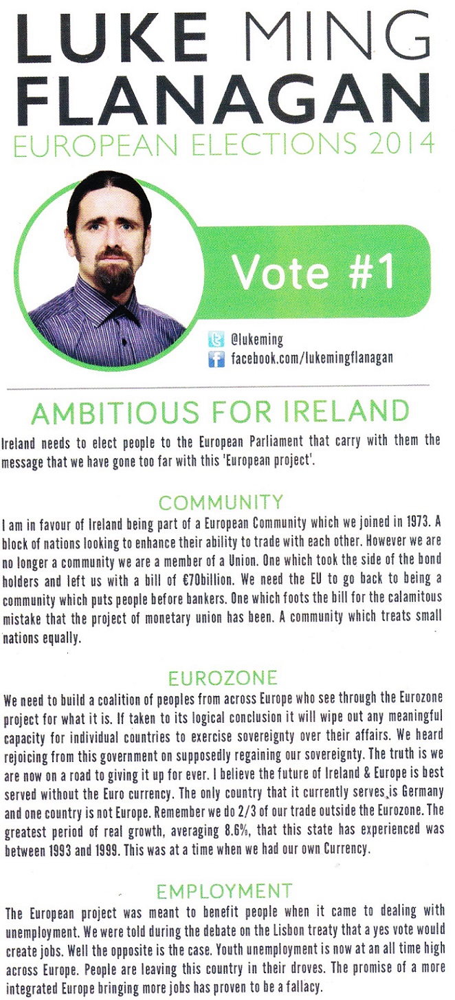 Leaflet from Luke ‘Ming’ Flanagan -Independent -Midlands NorthWest -2014 European Elections » lukeming1