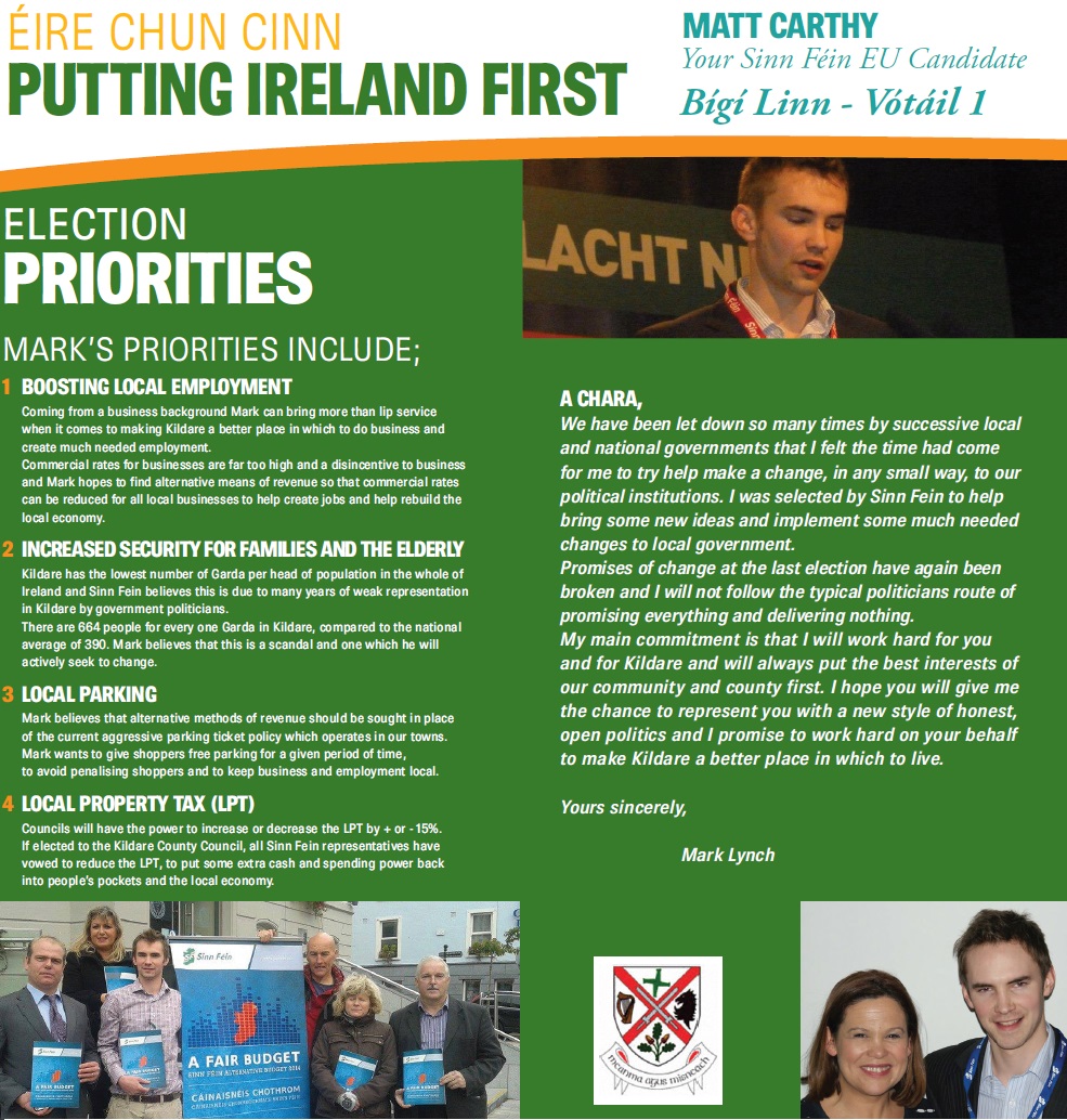 Leaflet from Mark Lynch -Sinn Fein -Newbridge Kildare -2014 Local Elections » mlynchl2