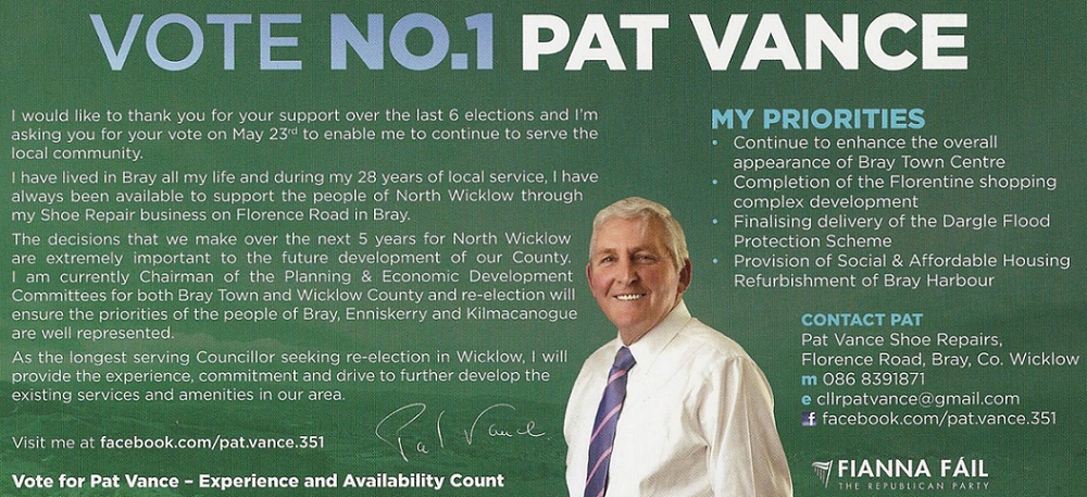 Leaflet from Pat Vance – Fianna Fail -Bray -2014 Local Elections » pvance2