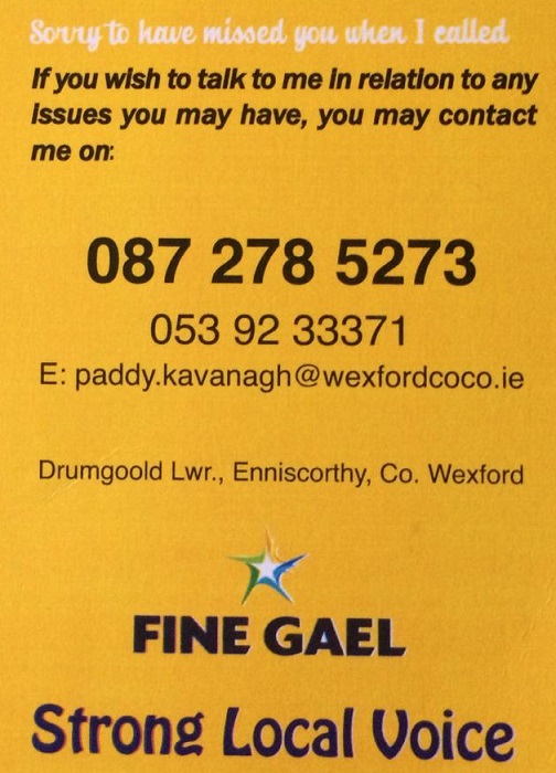 “Sorry I Missed You ” Card from Paddy Kavanagh -Fine Gael -Enniscorthy » pkavanaghsimu2