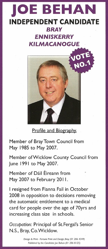 Leaflet from Joe Behan -Independent – Bray -2014 Local Elections » jbehan4