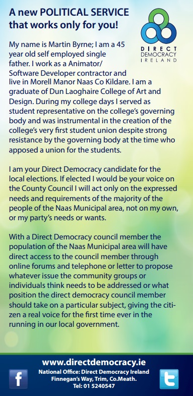 Leaflet from Martin Byrne -Direct Democracy Ireland -Naas -2014 Local Elections » mbyrne2