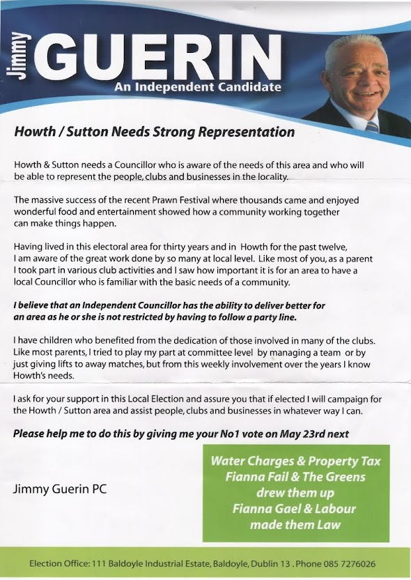 Letter and Canvass Card from Jimmy Guerin -Independent -Howth Malahide » jguerin1
