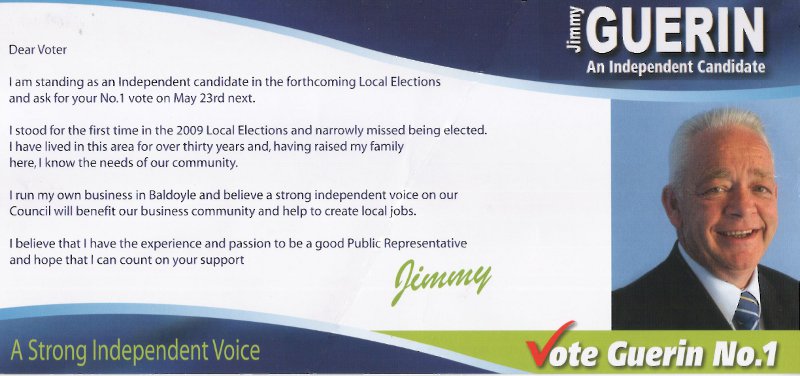 Letter and Canvass Card from Jimmy Guerin -Independent -Howth Malahide » jguerin2