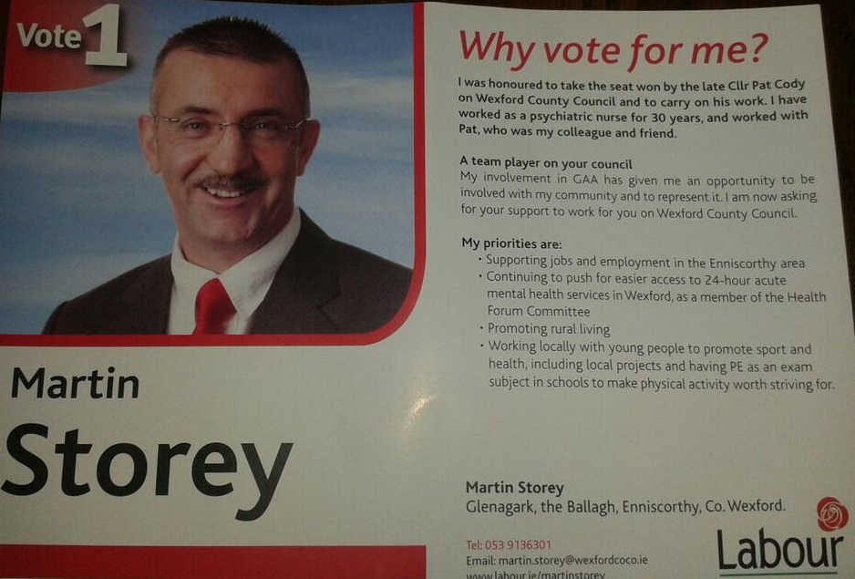 Flyer for Martin Storey -Labour Party -Enniscorthy -2014 Local Elections » martinstorey