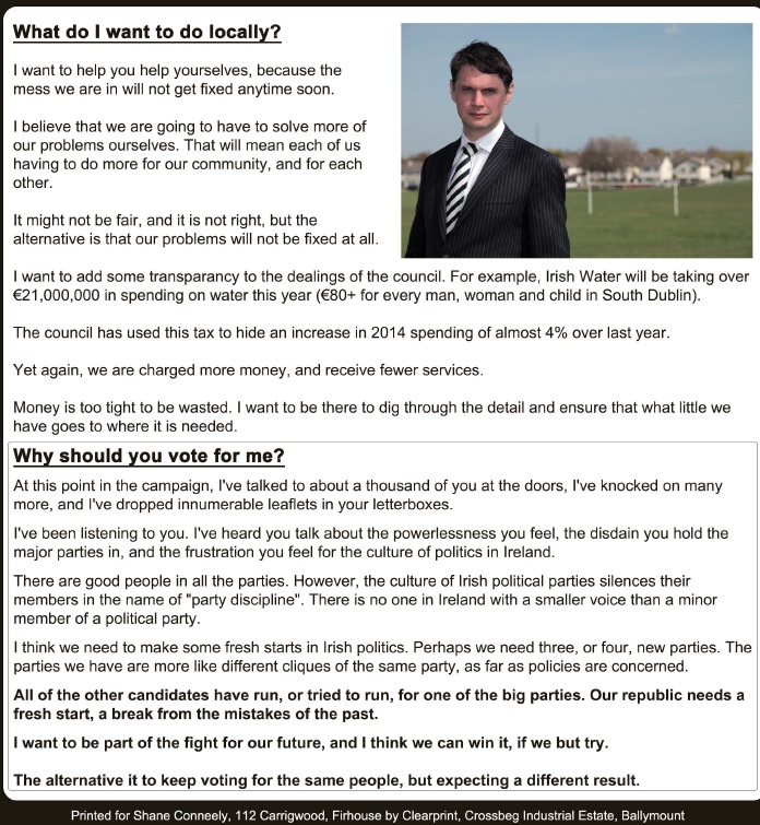 “#No-Nonsense” -Leaflet from Shane Conneely -Independent -Terenure Templeogue -2014 Local Elections » sconneely2