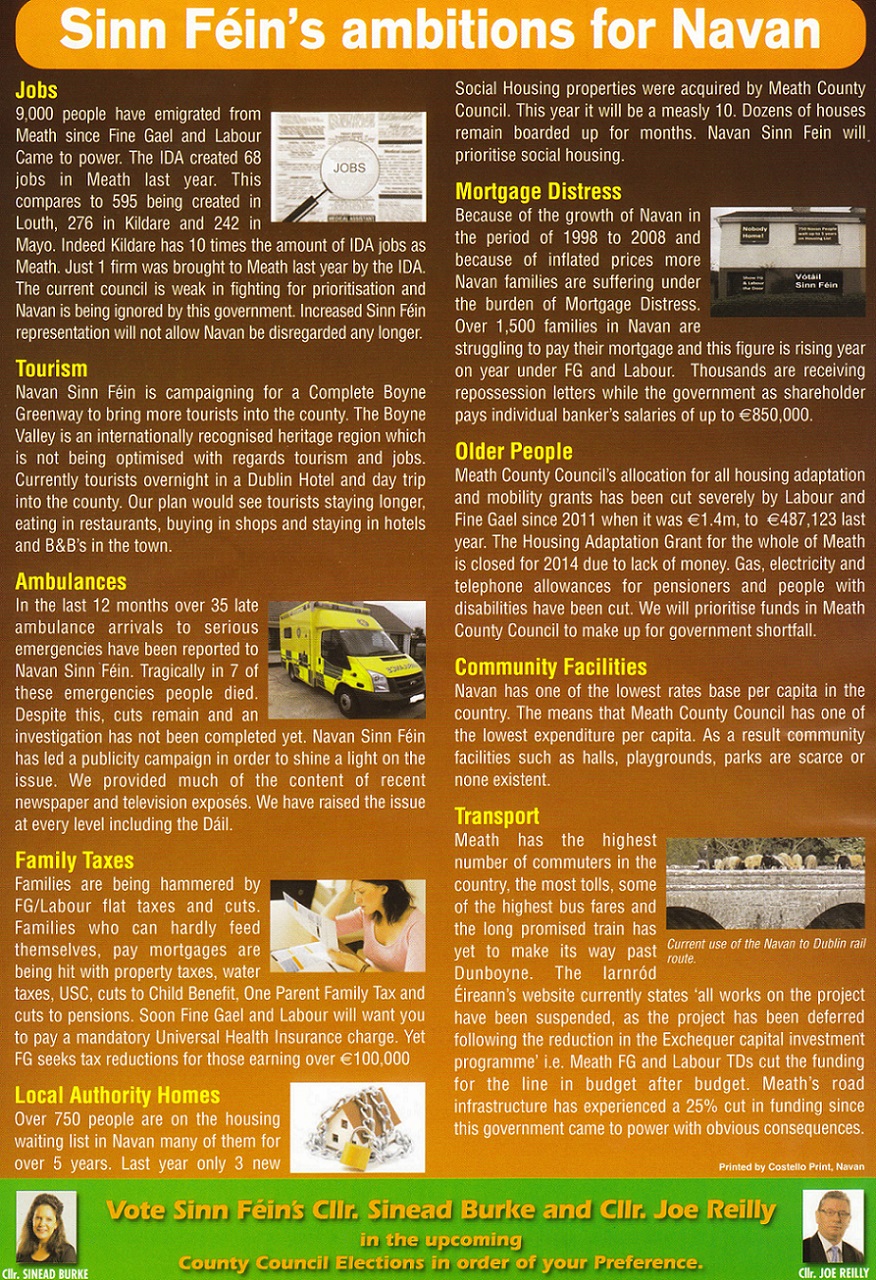 “FG / Labour Seek To Close A&E” leaflet from Joe Reilly , Sinead Burke -Sinn Fein -Navan » SFNavan2