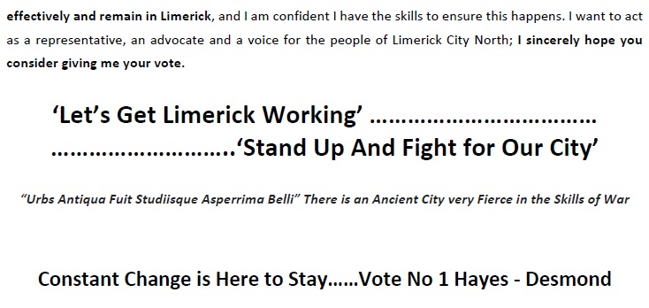 Poster and Press Release from Desmond Hayes -Independent -Limerick City North » deshayes4