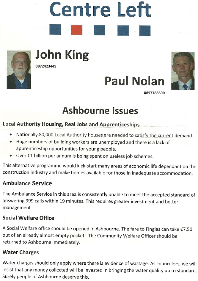 Leaflet from John King and Paul Nolan -Meath Centre Left – Ashbourne -2014 Local Elections » kingnolan1