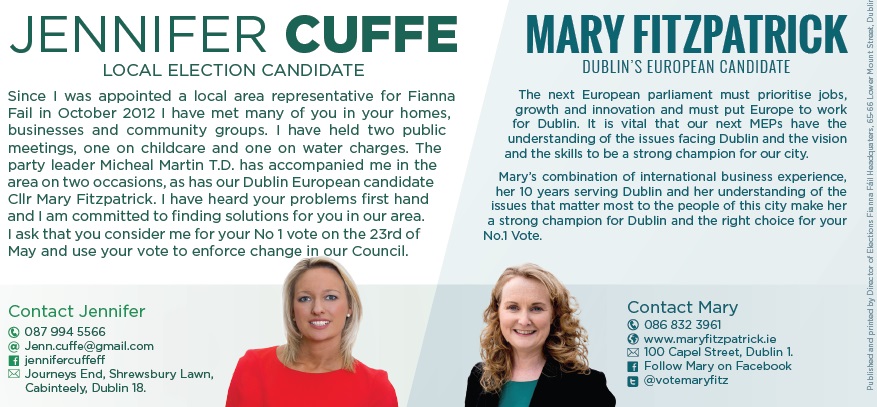 Canvass Card for Jennifer Cuffe / Mary Fitzpatrick -Fianna Fail -Killiney Shankill / Dublin » jcuffemf2