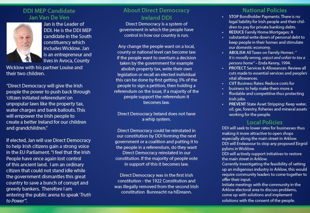 Leaflet from Brian Whelan – Direct Democracy Ireland -Arklow -2014 Local Elections » bwhelan2